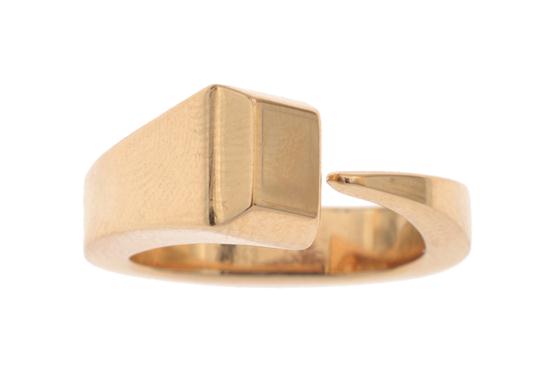 Of modern design the squared tapering band, in 18ct gold, ring size H-I.