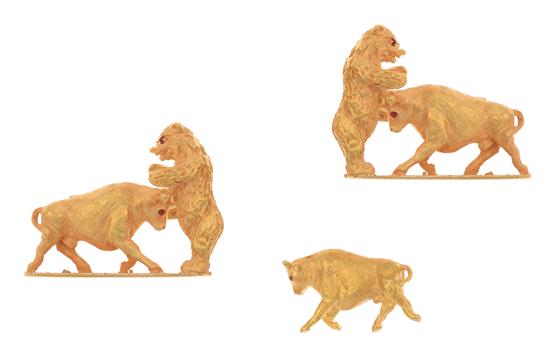 A PAIR OF GOLD BULL AND BEAR CUFFLINKS