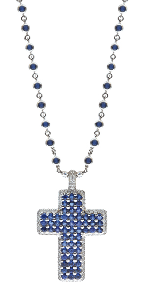 A SAPPHIRE AND DIAMOND CROSS PENDANT NECKLACE BY DE GRISOGONO