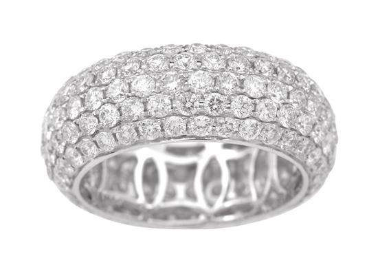 Comprising five rows of pave set round brilliant cut diamonds, totalling 3.56cts, in 18ct white gold, independent valuation available, ring size M-N.