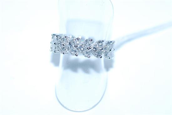 A FULL CIRCLE DIAMOND RING - Comprising forty two princess cut diamonds totalling 3.88cts, in 18ct white gold, ring size M-N.