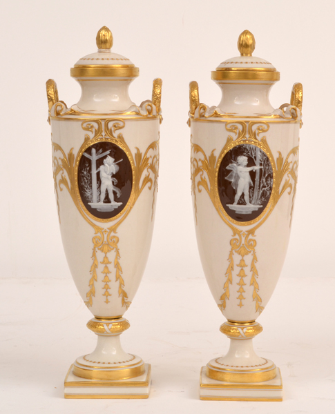 With cocoa and white cameo roundel on white and gilt ground