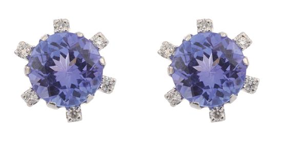 A PAIR OF TANZANITE AND DIAMOND EARRINGS