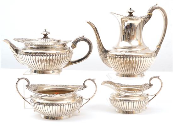 Comprising a teapot, coffee pot, sugar bowl and creamer each with gadrooned borders, 2702grs. total weight of silver, the coffee pot 22.5cm high.
