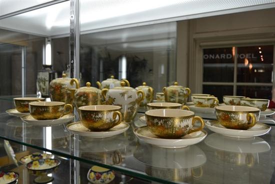 includes teapot, milk jug, sugar bowl (restored handle), six cups and matching saucers, some minor wear to gilt
