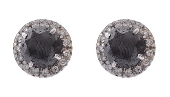 A PAIR OF BLACK AND WHITE DIAMOND EARRINGS