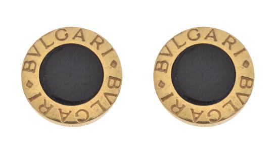 From the 'Bulgari' collection, the onyx discs, within a gold surround, to post and butterfly fittings, in 18ct gold, boxed with papers.