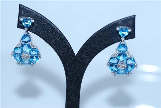 A PAIR OF TOPAZ AND DIAMOND DROP EARRINGS IN 18CT WHITE GOLD, INDEPENDENT VALUATION AVAILABLE