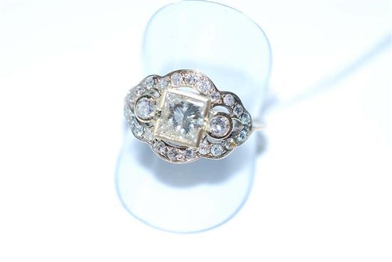 A DIAMOND RING CENTRALLY SET WITH A 1.02CT PRINCESS CUT DIAMOND FLANKED BY TWO ROUND BRILLIANT CUT DIAMOND WITH DIAMOND SURROUND IN 18CT GOLD, INDEPENDENT VALUATION AVAILABLE