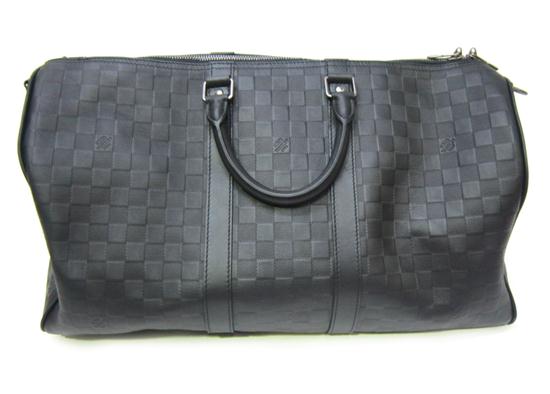 A LOUIS VUITTON KEEPALL TRAVEL BAG IN DAMIER CARBONE CANVAS