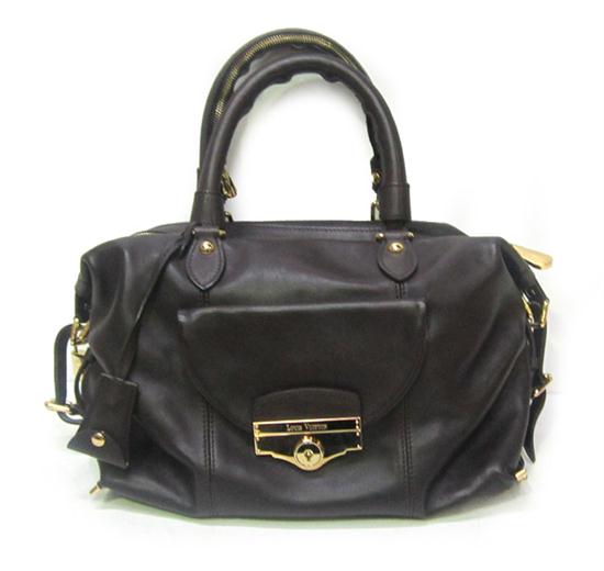 A LOUIS VUITTON HANDBAG IN BLACK LEATHER WITH GOLD METAL HARDWARE