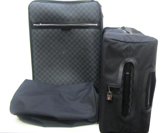 A PAIR OF LOUIS VUITTON PEGASE 65 TROLLEY SUITCASES IN DAMIER GRAPHITE CANVAS BOTH WITH OUTER COVERS (ONE DAMAGED TO THE FRONT)