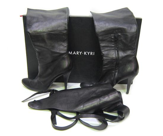 A PAIR OF MARY KYRI KNEE LENGTH BOOTS, APPROXIMATE SIZE 40 EUROPEAN.