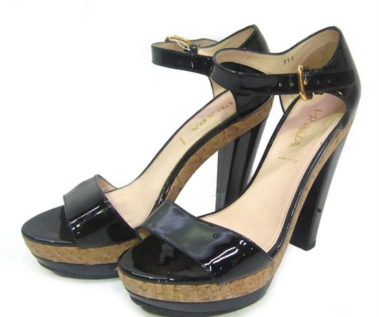 A PAIR OF PRADA BLACK PATENT LADIES SHOE'S, 39 1/2.