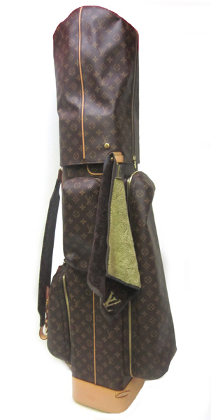 A LOUIS VUITTON GOLF BAG IN MONOGRAM CANVAS WITH OUTER COVER AND TOWEL