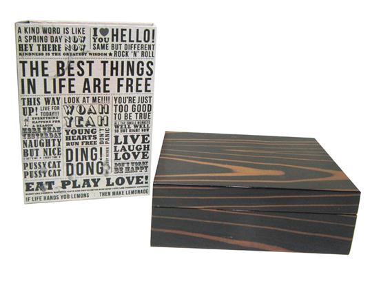 TWO WOODEN BOXES INCLUDING FIGURED WOOD AND NOVELTY NEWSPAPER