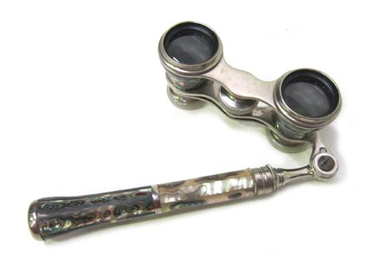 A PAIR OF CHROME AND PAUA SHELL OPERA GLASSES