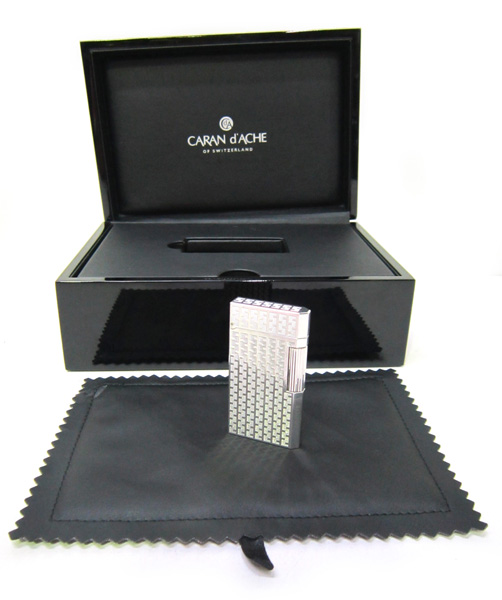 A CARAN D'ACHE SWITZERLAND LIGHTER, STAINLESS STEEL CASE.