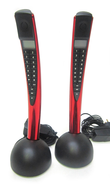 A PAIR OF RED BANG & OLUFSEN PHONES - REQUIRES B&O BEOLINE BASE STATION