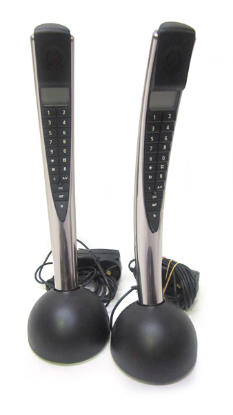 A PAIR OF SILVER BANG & OLUFSEN PHONES - REQUIRES B&O BEOLINE BASE STATION