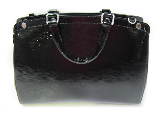 A LOUIS VUITTON BLACK PATENT LADIES HANDBAG