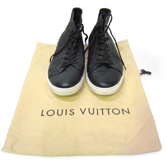 A PAIR OF LOUIS VUITTON MENS LEATHER LACE UP ANKLE SNEAKERS, ESTIMATED SIZE 10.