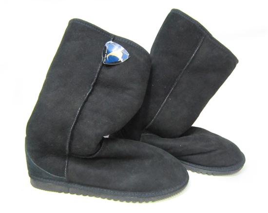 A PAIR OF MENS BLACK UGG BOOTS, SIZE 11.