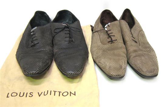 TWO PAIRS OF MENS SNAKE SKIN DRESS SHOES INCLUDING LOUIS VUITTON, ESTIMATED SIZE 10.