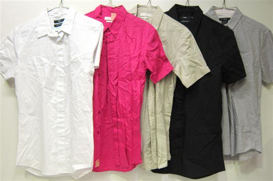 FIVE QUALITY BRANDED MENS SHORT SLEEVE SHIRTS INCLUDING ALEXANDER MCQUEEN, ESTIMATED SIZE M-L.