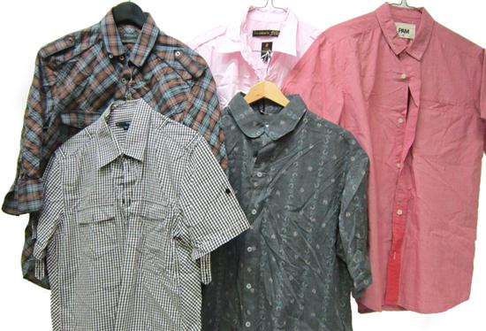 FIVE QUALITY BRANDED MENS SHORT SLEEVE SHIRTS INCLUDING ARTHUR GALAN, ESTIMATED SIZE M-L.