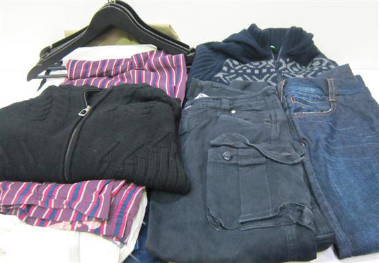 ASSORTED CHILDRENS AND MENS CASUAL CLOTHING, ASSORTED SIZES.