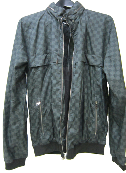 A LOUIS VUITTON MENS ZIP CASUAL JACKET IN DAMIER DESIGN, ESTIMATED SIZE 102 / M-L.