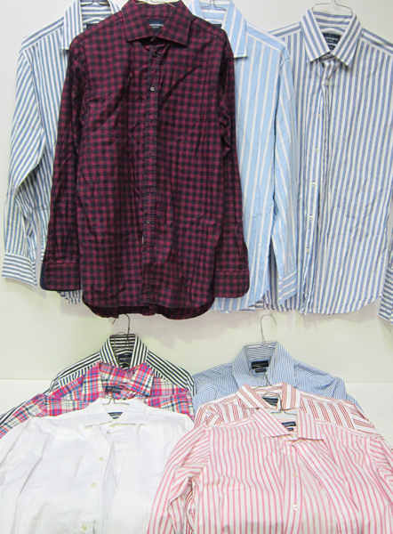 TEN HERRINGBONE LONG SLEEVE BUSINESS SHIRTS, ESTIMATED SIZE M-L.