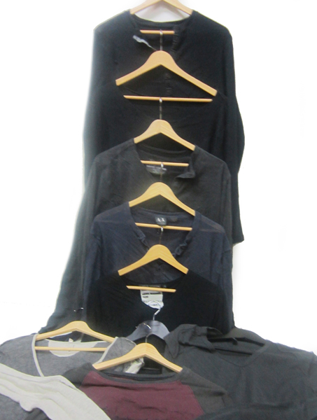 NINE QUALITY BRANDED LONG SLEEVE MENS T-SHIRTS INCLUDING ARMANI, ESTIMATED SIZE M-L.