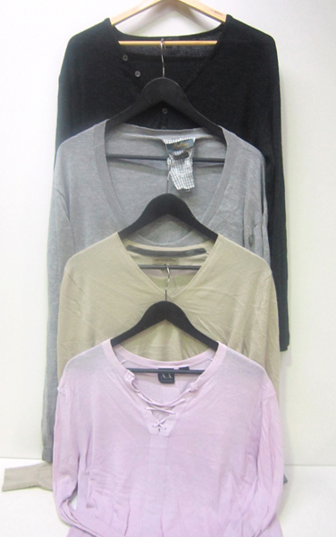 FOUR QUALITY BRANDED MENS LIGHT WEIGHT JUMPERS INCLUDING ARMANI, ESTIMATED SIZE M-L.