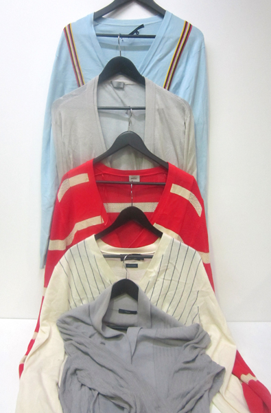 FIVE QUALITY BRANDED MENS LIGHT WEIGHT CARDIGANS INCLUDING RALPH LAUREN, ESTIMATED SIZE M-L.