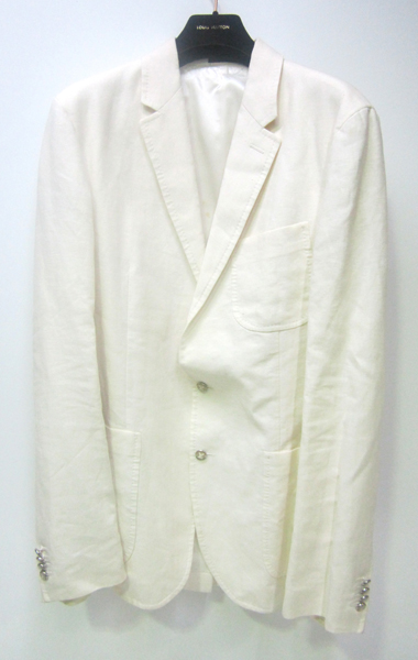 A MENS LOUIS VUITTON WHITE LINEN JACKET, ESTIMATED SIZE 102 / M-L.