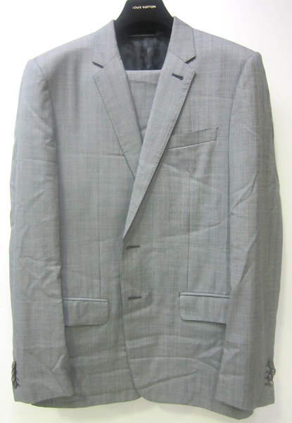 A MENS LOUIS VUITTON LIGHT GREY SUIT, ESTIMATED SIZE 102 / M-L.