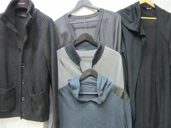 A QUQNTITY OF BRANDED CARDIGANS AND PULLOVERS, ESTIMATED SIZE M-L.