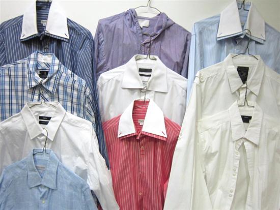 TEN QUALITY BRANDED LONG SLEEVE MENS BUSINESS SHIRTS INCLUDING VITTORIO MARCHEST, ESTIMATED SIZE M-L.