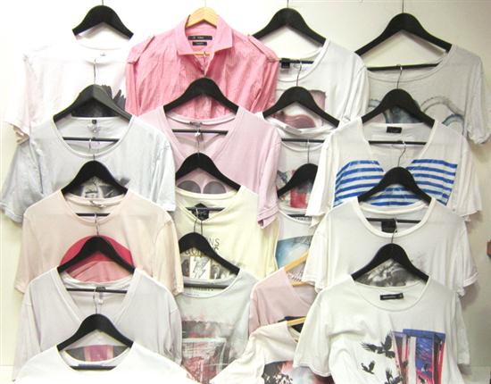 SIXTEEN MENS T-SHIRTS AND ONE BUSINESS SHIRT, ESTIMATED SIZE M-L.