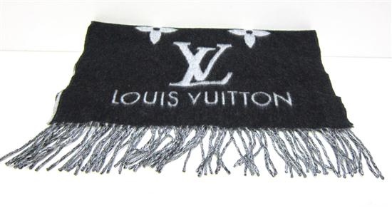 A LOUIS VUITTON SCARF WITH MONOGRAM DETAIL.