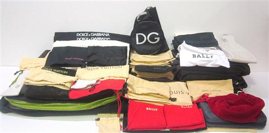 A QUANTITY OF BRANDED CLOTHES BAGS AND CARRIERS INCLUDING LOUIS VUITTON.