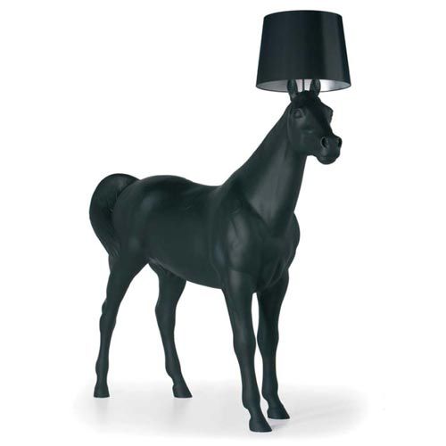 A BLACK FULL SIZE STALLION LAMP, DESIGNED BY FRONT SWEDEN FOR MOOOI.