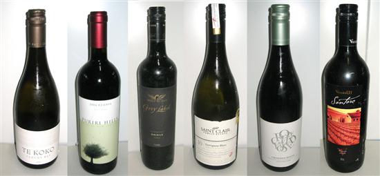 A SELECTION OF SIX BOTTLES OF WINE INCLUDING WOLF BLASS GREY LABLE SHIRAZ.