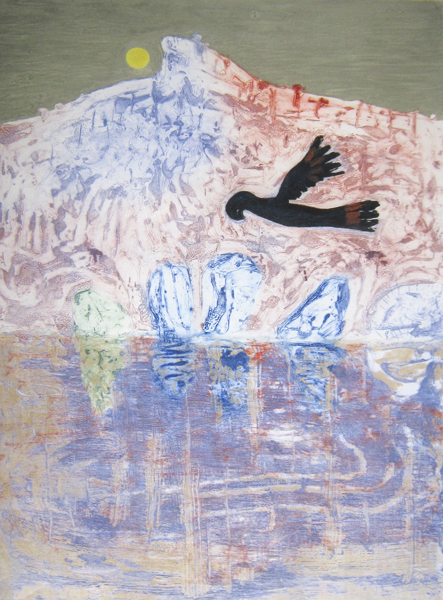 § ARTHUR BOYD, "PULPIT ROCK" COLLOGRAPH, # A/P, SIGNED, 89 CM X 62 CM Please note this lot is subject to Resale Royalty