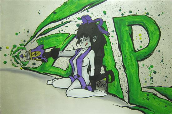 JAKE RESTON, "ZAP", ACRYLIC & SILVER PAINT, SIGNED, 51 CM X 76 CM