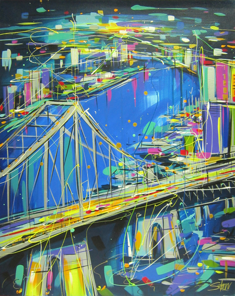 STARR, "TWILIGHT IN TEAL", ACRYLIC ON CANVAS, SIGNED, 296 CM X 50 CM