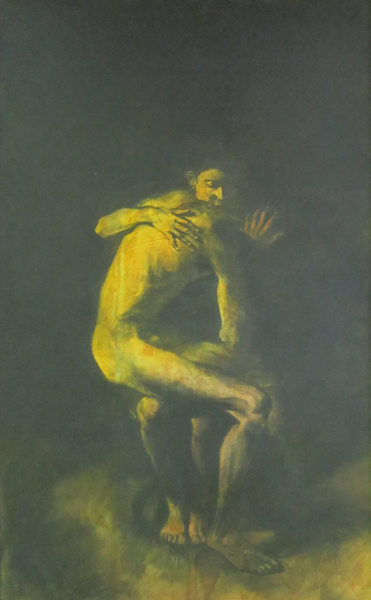 ARTIST ILLEGIBLE, UNTITLED, MIXED MEDIA ON CANVAS, 174 CM X 108 CM