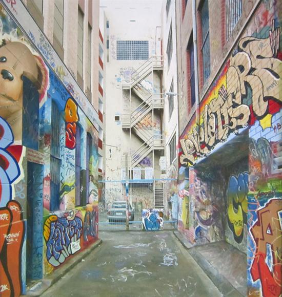 § LUKE BARKER, "THE MYSTERY OF HANGING SHOES", OIL ON LINEN, SIGNED, 152 CM X 152 CM Please note this lot is subject to Resale Royalty